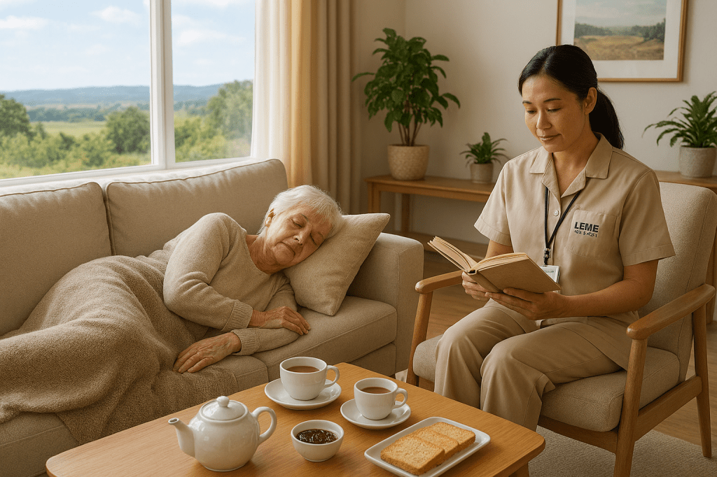 Ao permanecer ao lado, silenciosa e atenta, cuidadora ou cuidador transmitem tranquilidade e confiança, criando um ambiente onde o repouso é protegido e o despertar pode acontecer sem